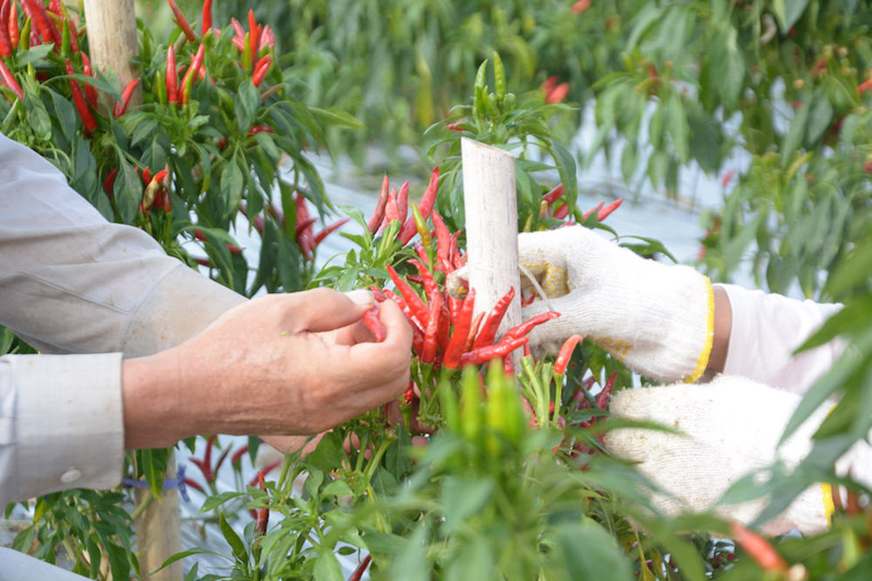 唐辛子を食べると身体が熱くなり、汗が出ます。これは唐辛子の辛味成分であるカプサイシンの働きで、血行が促進され、新陳代謝が活発になるとともに、この時、脂肪の代謝も高まります。風邪や感染症に 対する抵抗力も上がると考えられています。その他に食欲を促進させる働きやダイエット・冷え性・肩こり などにも効果があると言われています。