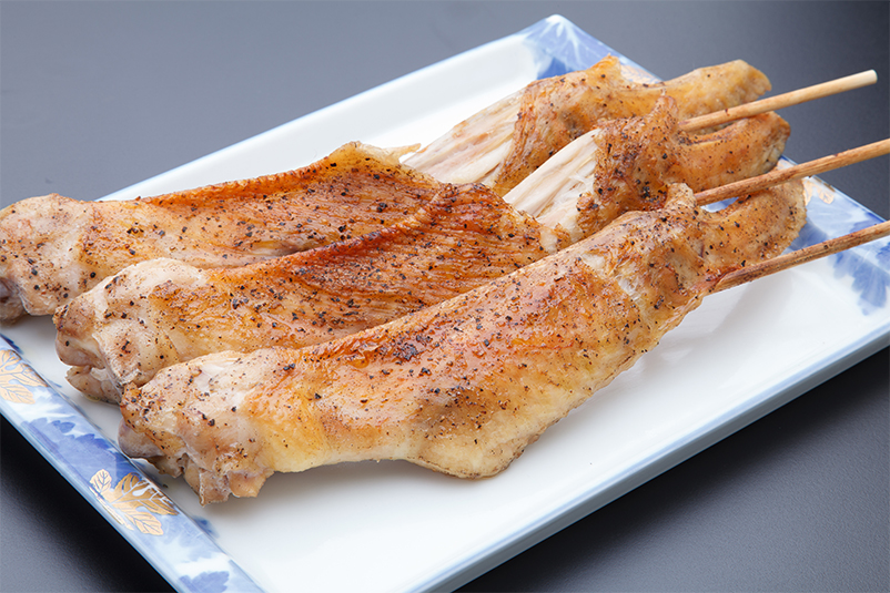 熊本の地鶏「天草大王」の手羽元から手羽先をバラさずに串に刺しました。 養鶏生産者でなければ販売できない希少な部位です。