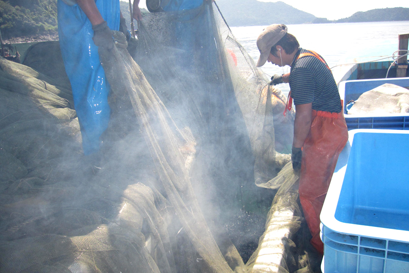 漁獲から加工までを一貫して行う事で美味しい天草いりこを作れます。その後、出来たいりこを手作業で選別・袋詰めをして全国のお客様へと産地直送でお届けしています。 天草いりこは出汁取りにおすすめの商品ですが、新鮮なイワシを加工しているため市販のいりこと比べると苦味が少なくそのままでも美味しく召し上がれます。いりこはカルシウムが豊富なため、丸ごと食べる事がお勧めです。